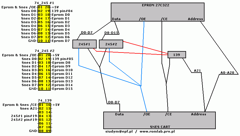 Connect 16-bit EPROM/FLASH memory to SNES 8bit bus: