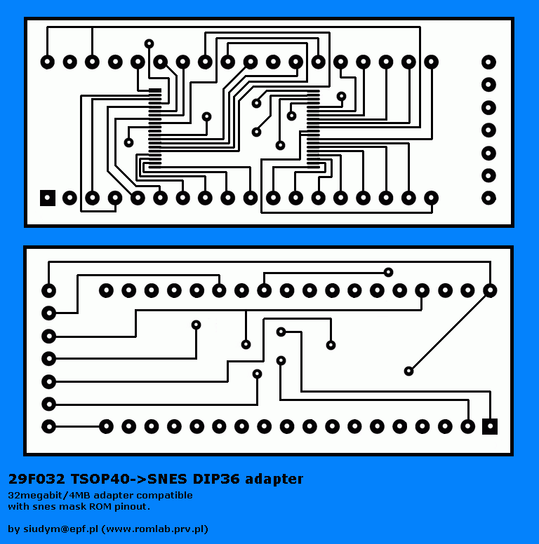 32megabit/4MB 29F032 TSOP40->SNES DIP36 adapter compatible with snes Mask ROM pinout.
