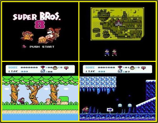 Original ingame sprites has been replace to Mario characters and game renamed to "Super Bros 8".